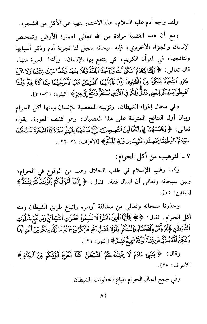 وحذرنا سبحانه وتعالى من مخالفة أوامره واتباع طريق الشيطان ومنه أكل الحرام. فقال: {أَيُّهَا الَّذِينَ آمَنُوا لَا تَتَّبِعُوا خُطُوَاتِ الشَّيْطَانِ وَمَنْ يَتَّبِعْ خُطُوَاتِ الشَّيْطَانِ فَإِنَّهُ يَامُرُ بِالْفَحْشَاءِ وَالْمُنْكَرِ وَلَوْلَا فَضْلُ اللَّهِ عَلَيْكُمْ وَرَحْمَتُهُ مَا زَكَا مِنْكُمْ مِنْ أَحَدٍ أَبَدًا وَلَكِنَّ اللَّهَ يُزَكِّي مَنْ يَشَاءُ وَاللَّهُ سَمِيعٌ عَلِيمٌ} [النور: 21].