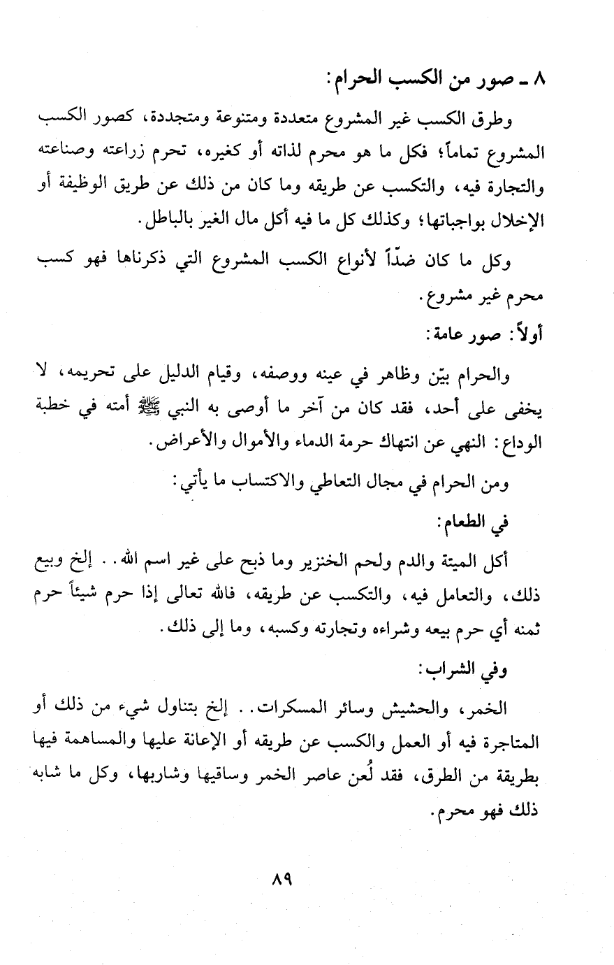 ومن الحرام في مجال التعاطي والاكتساب ما يأتي: