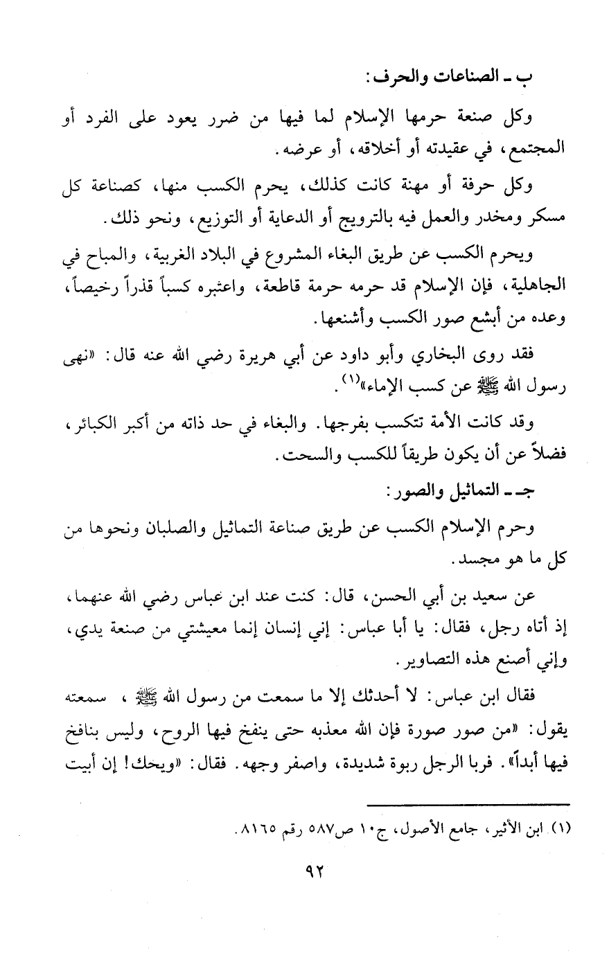 وحرم الإسلام الكسب عن طريق صناعة التماثيل والصلبان ونحوها من كل ما هو مجسد.