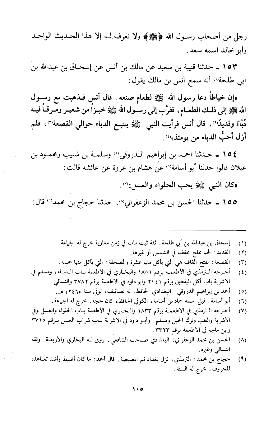 (4) أخرجه الترمذي في الأطعمة برقم 1851 والبخاري في الاطعمة باب الدباء، ومسلم في الاشربة باب أكل اليقطين برقم 2041 وابو داود في الاطعمة برقم 3782 والنسائي.