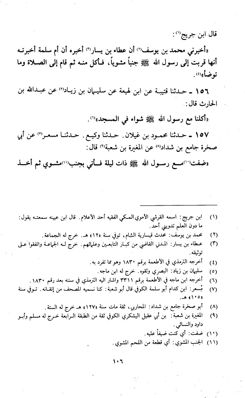 (1) ابن جريج: اسمه القرشي الأموي المكي الفقيه أحد الأعلام. قال ابن عيينه سمعته يقول: ما دون العلم تدويني أحد.