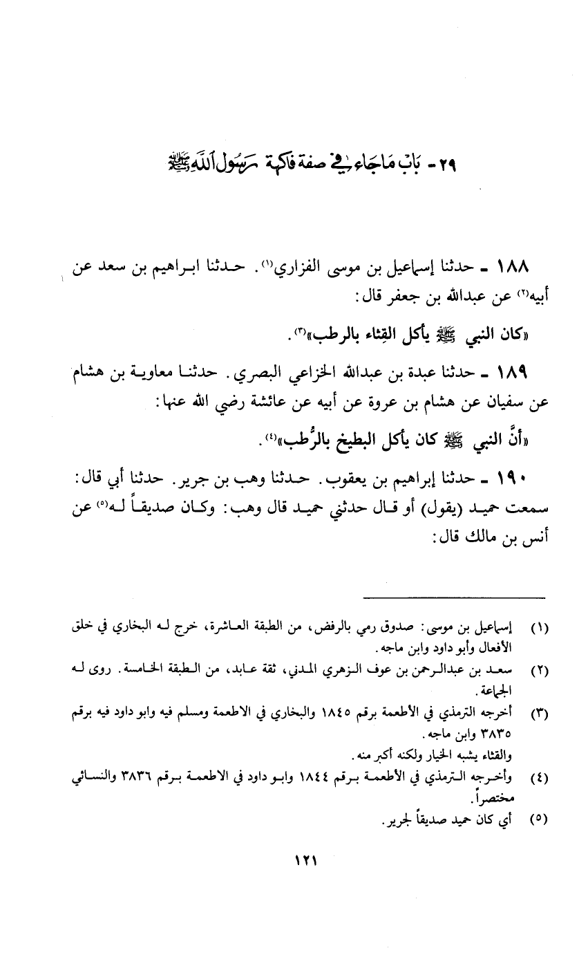 29- باب ما جاء في صفة فاكهة رسول الله صلى الله عليه وسلم