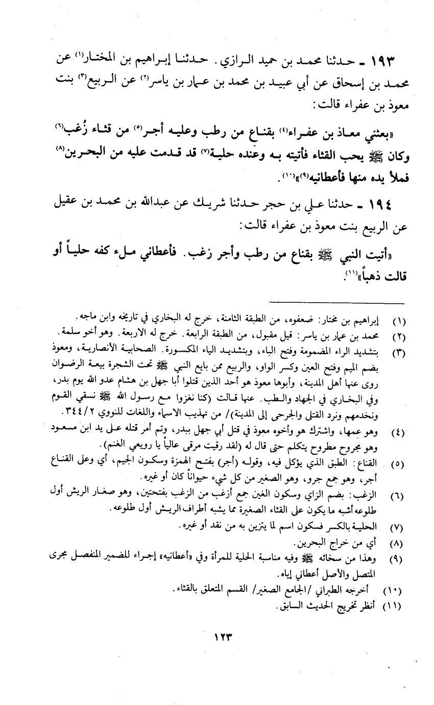 193- حدثنا محمد بن حميد الرازي. حدثنا إبراهيم بن المختار «1» عن محمد بن إسحاق عن أبي عبيد بن محمد بن عمار بن ياسر «2» عن الربيع «3» بنت معوذ بن عفراء قالت: