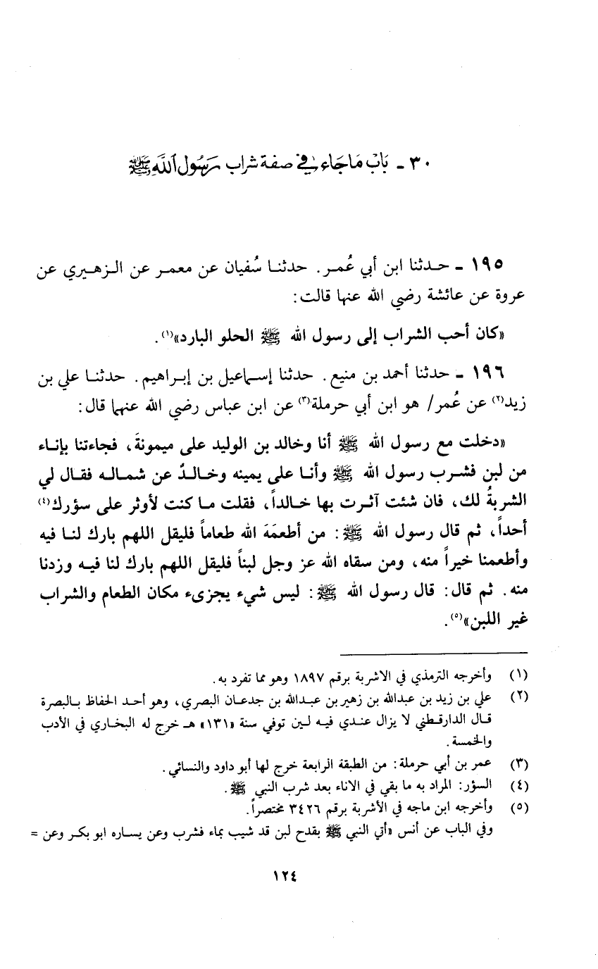 30- باب ما جاء في صفة شراب رسول الله صلى الله عليه وسلم