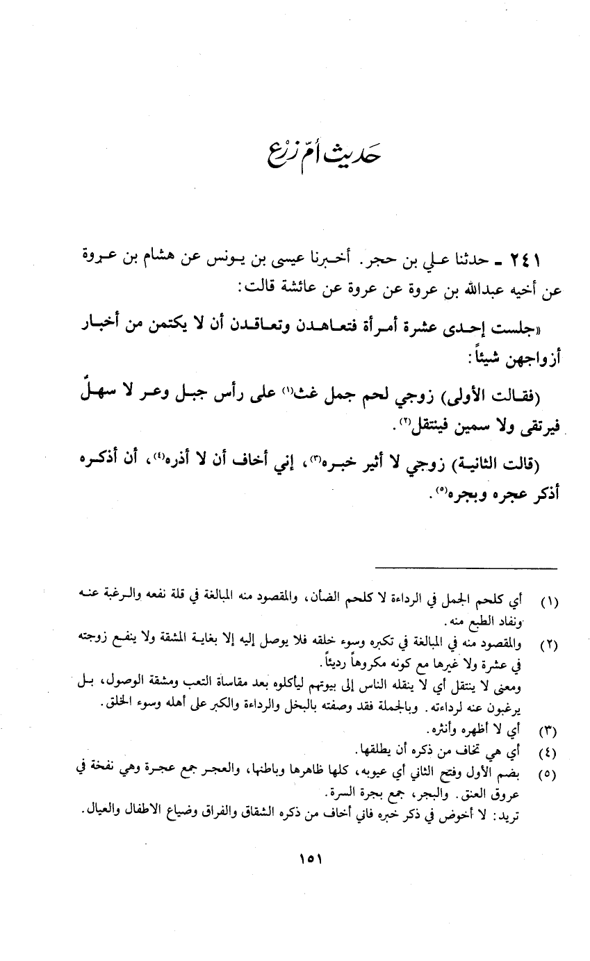 «جلست إحدى عشرة أمرأة فتعاهدن وتعاقدن أن لا يكتمن من أخبار أزواجهن شيئا: