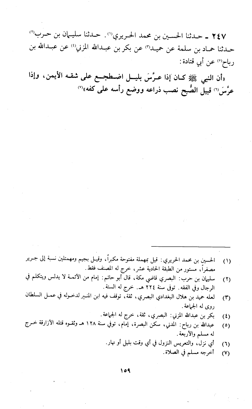 247- حدثنا الحسين بن محمد الحريري «1» . حدثنا سليمان بن حرب «2» حدثنا حماد بن سلمة عن حميد «3» عن بكر بن عبد الله المزني «4» عن عبد الله بن رباح «5» عن أبي قتادة: