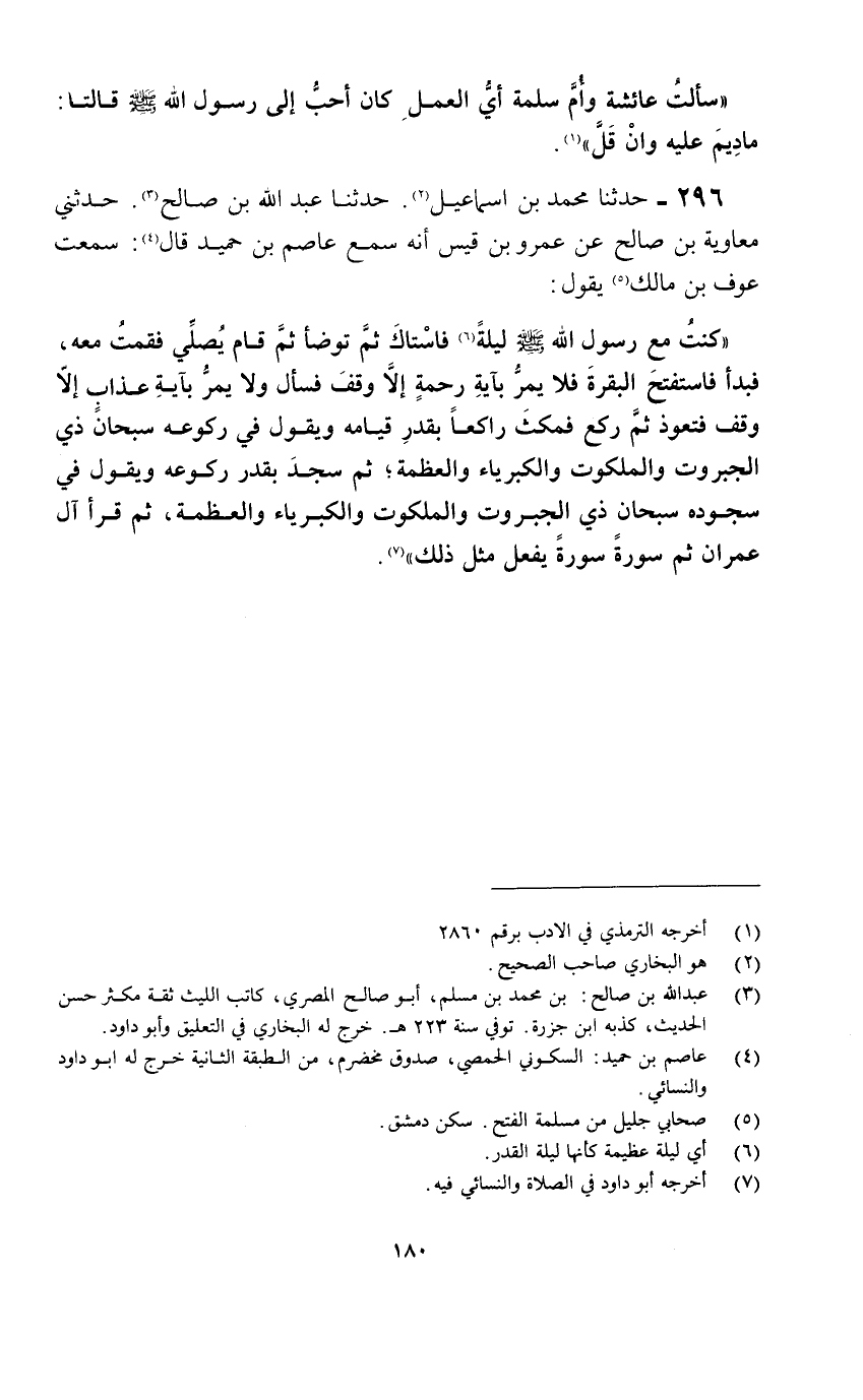 296- حدثنا محمد بن اسماعيل «2» . حدثنا عبد الله بن صالح «3» . حدثني معاوية بن صالح عن عمرو بن قيس أنه سمع عاصم بن حميد قال «4» : سمعت عوف بن مالك «5» يقول: