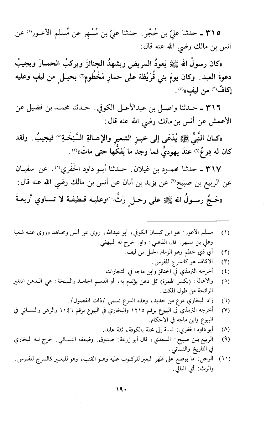 315- حدثنا عليّ بن حجر. حدثنا عليّ بن مسهر عن مسلم الأعور «1» عن أنس بن مالك رضي الله عنه قال: