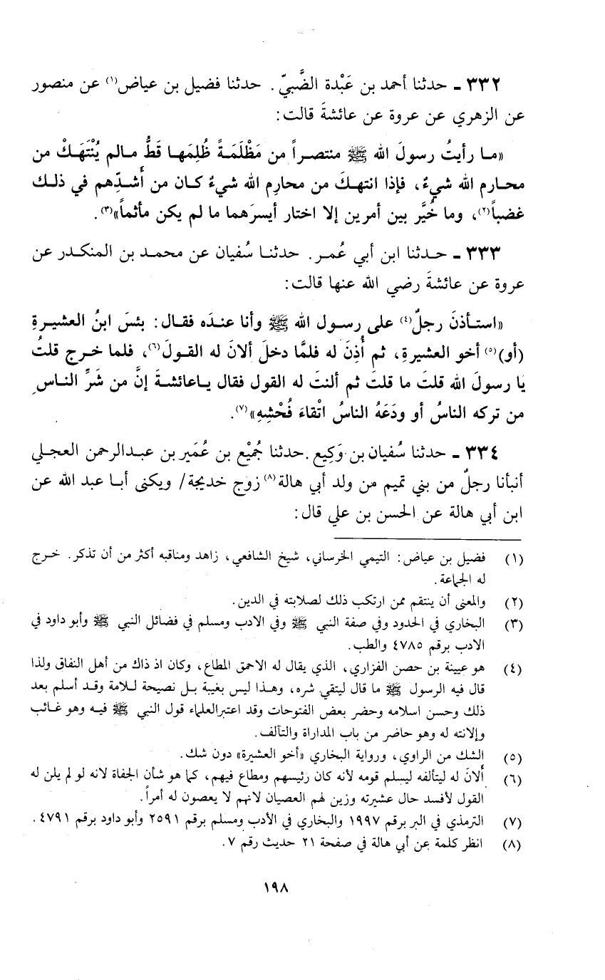 332- حدثنا أحمد بن عبدة الضّبيّ. حدثنا فضيل بن عياض «1» عن منصور عن الزهري عن عروة عن عائشة قالت: