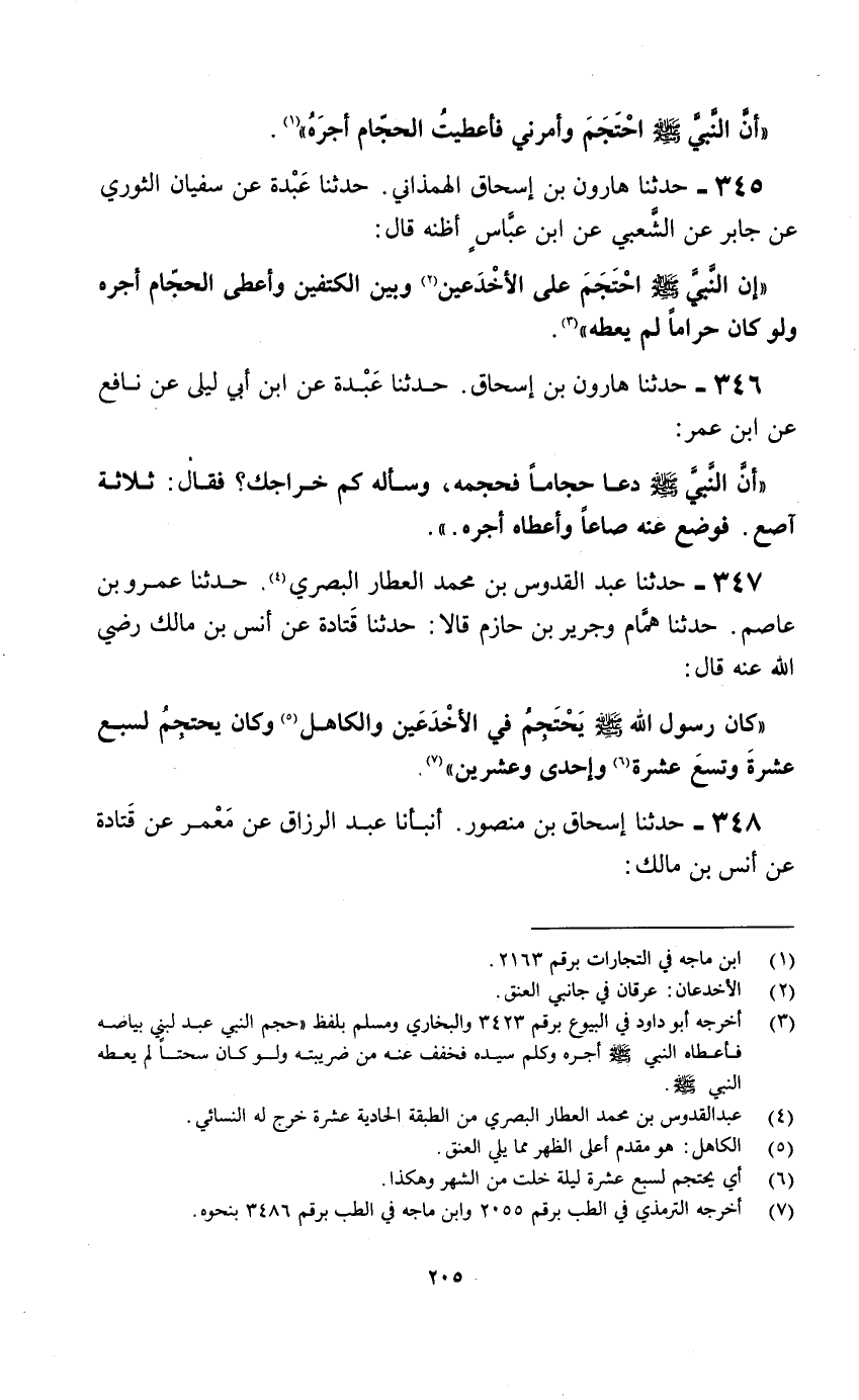 (3) أخرجه أبو داود في البيوع برقم 3423 والبخاري ومسلم بلفظ «حجم النبي عبد لبني بياضه فأعطاه النبي صلى الله عليه وسلم أجره وكلم سيده فخفف عنه من ضريبته ولو كان سحتا لم يعطه النبي صلى الله عليه وسلم.