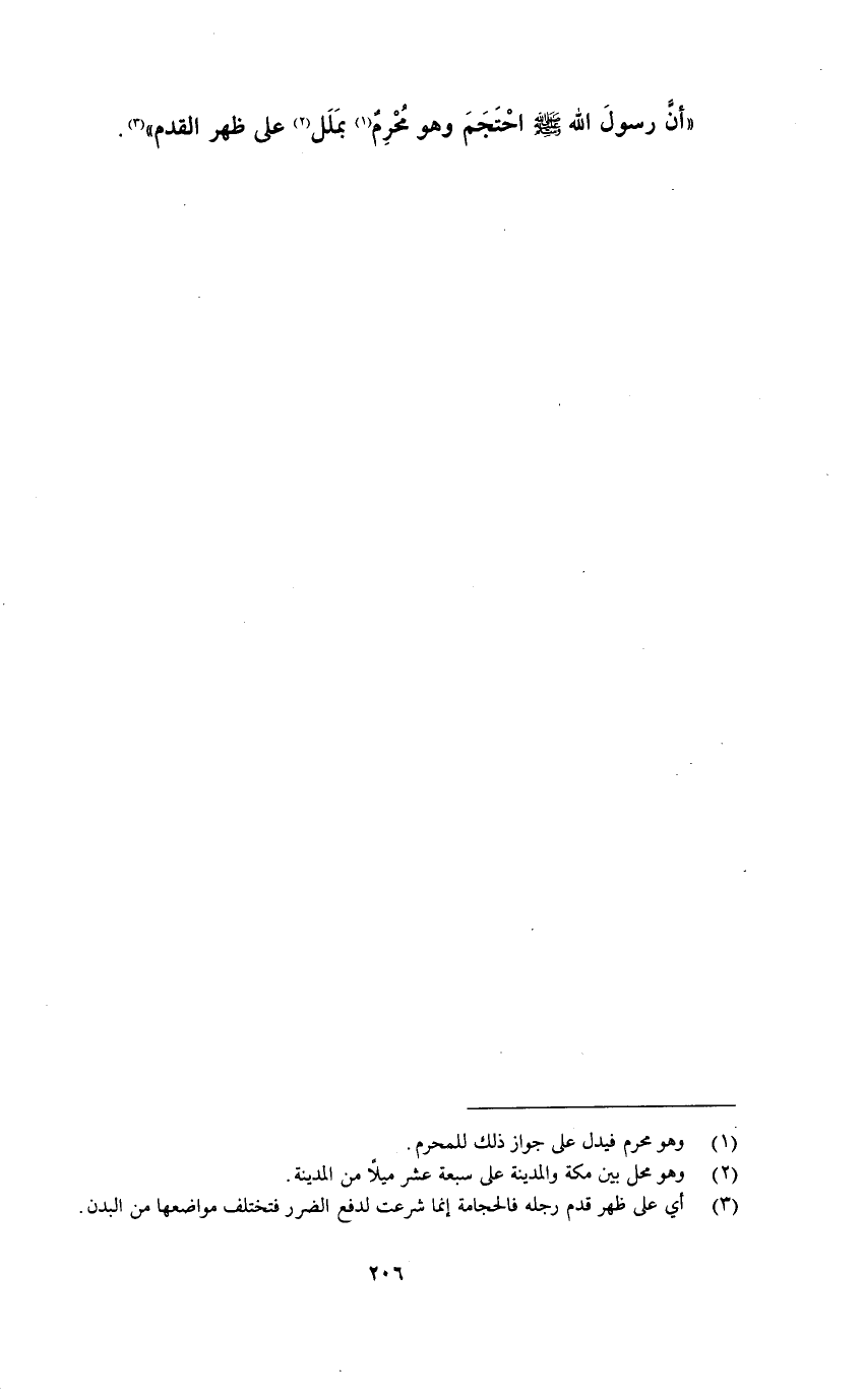 «أنّ رسول الله صلى الله عليه وسلم احتجم وهو محرم «1» بملل «2» على ظهر القدم» «3» .