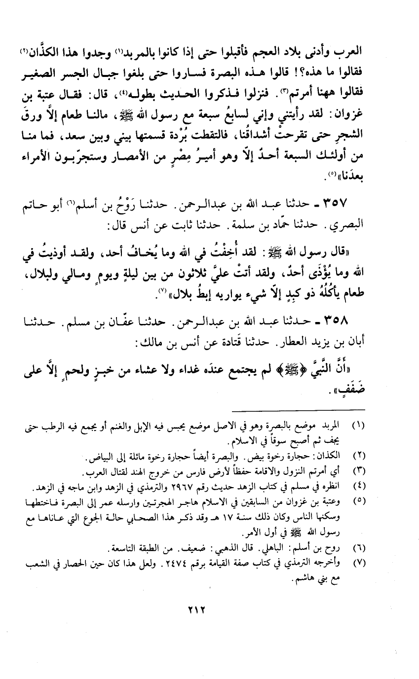 (5) وعتبة بن غزوان من السابقين في الاسلام هاجر الهجرتين وارسله عمر إلى البصرة فاختطها وسكنها الناس وكان ذلك سنة 17 هـ وقد ذكر هذا الصحابي حالة الجوع التي عاناها مع رسول الله صلى الله عليه وسلم في أول الأمر.