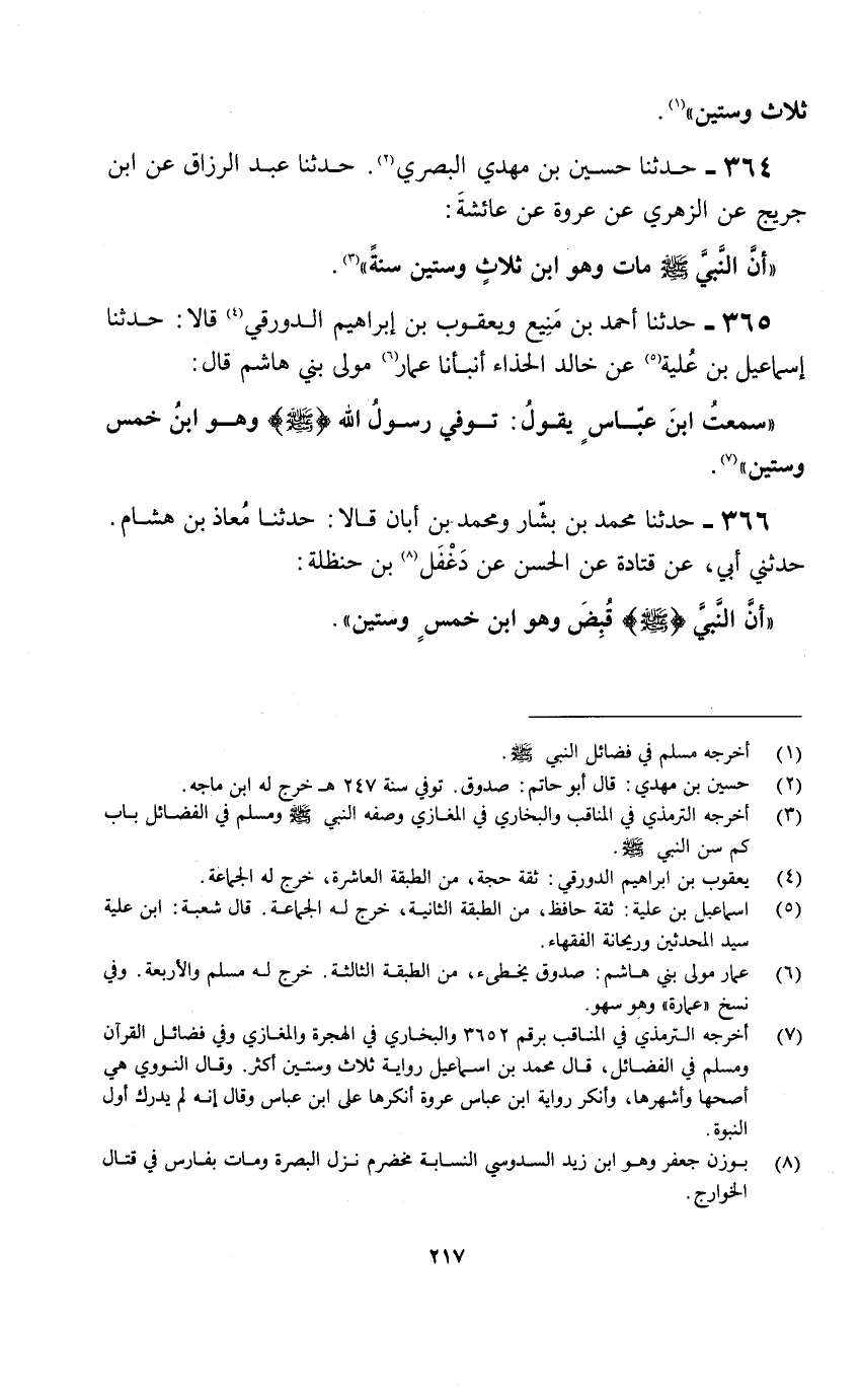 (3) أخرجه الترمذي في المناقب والبخاري في المغازي وصفه النبي صلى الله عليه وسلم ومسلم في الفضائل باب كم سن النبي صلى الله عليه وسلم.