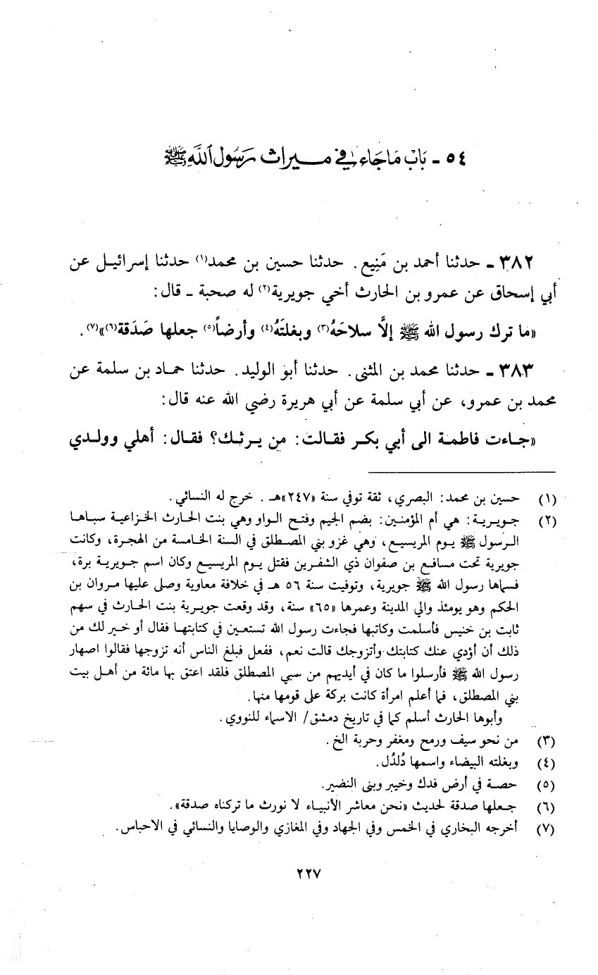 (7) أخرجه البخاري في الخمس وفي الجهاد وفي المغازي والوصايا والنسائي في الاحباس.