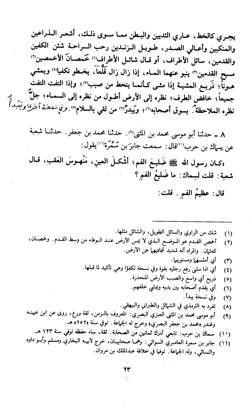 8- حدثنا أبو موسى محمد بن المثنى «9» . حدثنا محمد بن جعفر. حدثنا شعبة عن سماك بن حرب «10» قال: سمعت جابر بن سمرة «11» يقول: