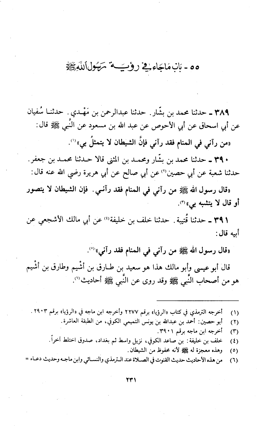 (1) أخرجه الترمذي في كتاب «الرؤيا» برقم 2277 وأخرجه ابن ماجه في «الرؤيا» برقم 2903.