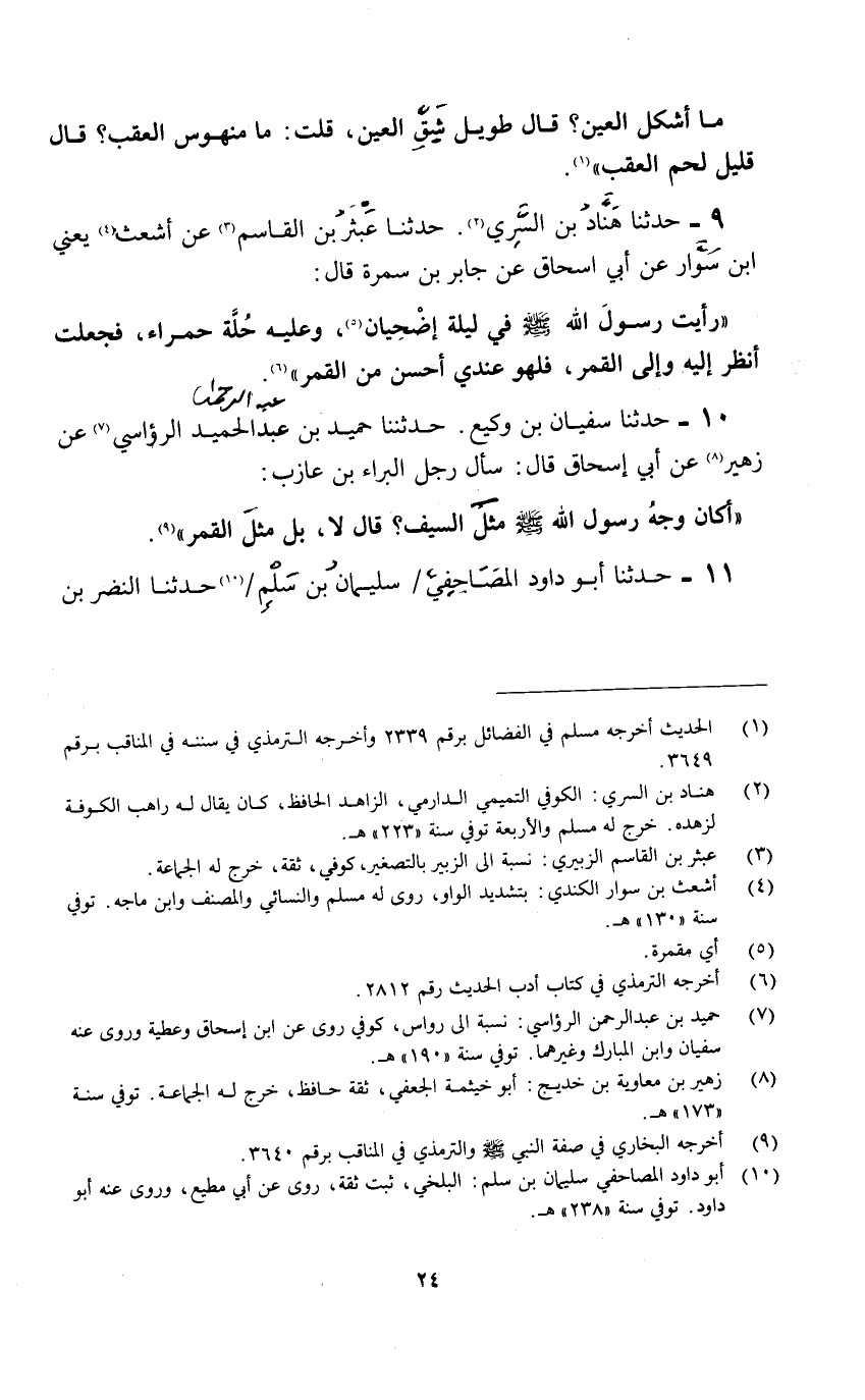 (9) أخرجه البخاري في صفة النبي صلى الله عليه وسلم والترمذي في المناقب برقم 3640.