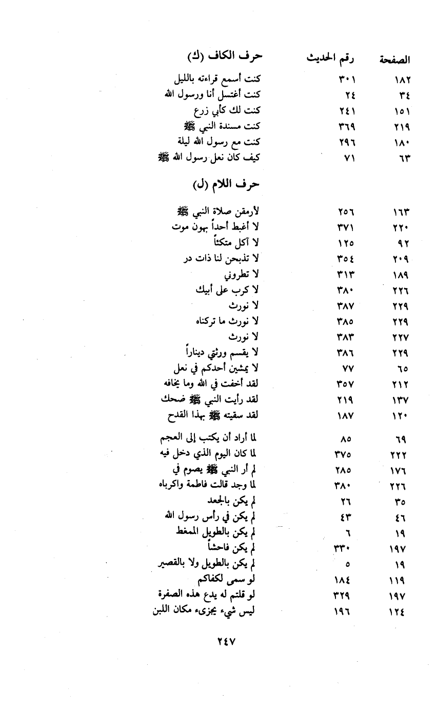 الصفحة/ رقم الحديث/ حرف الكاف (ك)