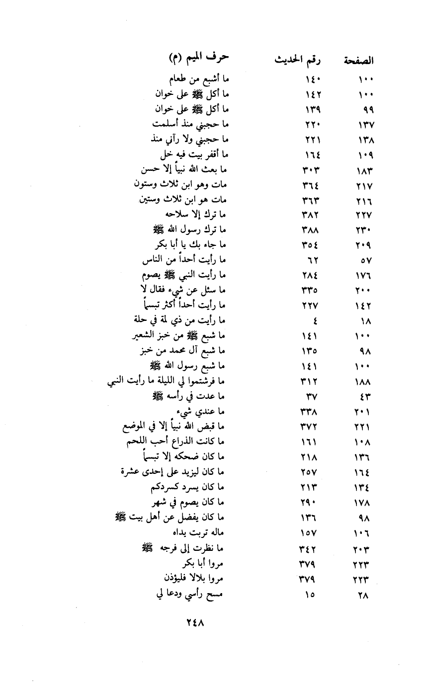الصفحة/ رقم الحديث/ حرف الميم (م)