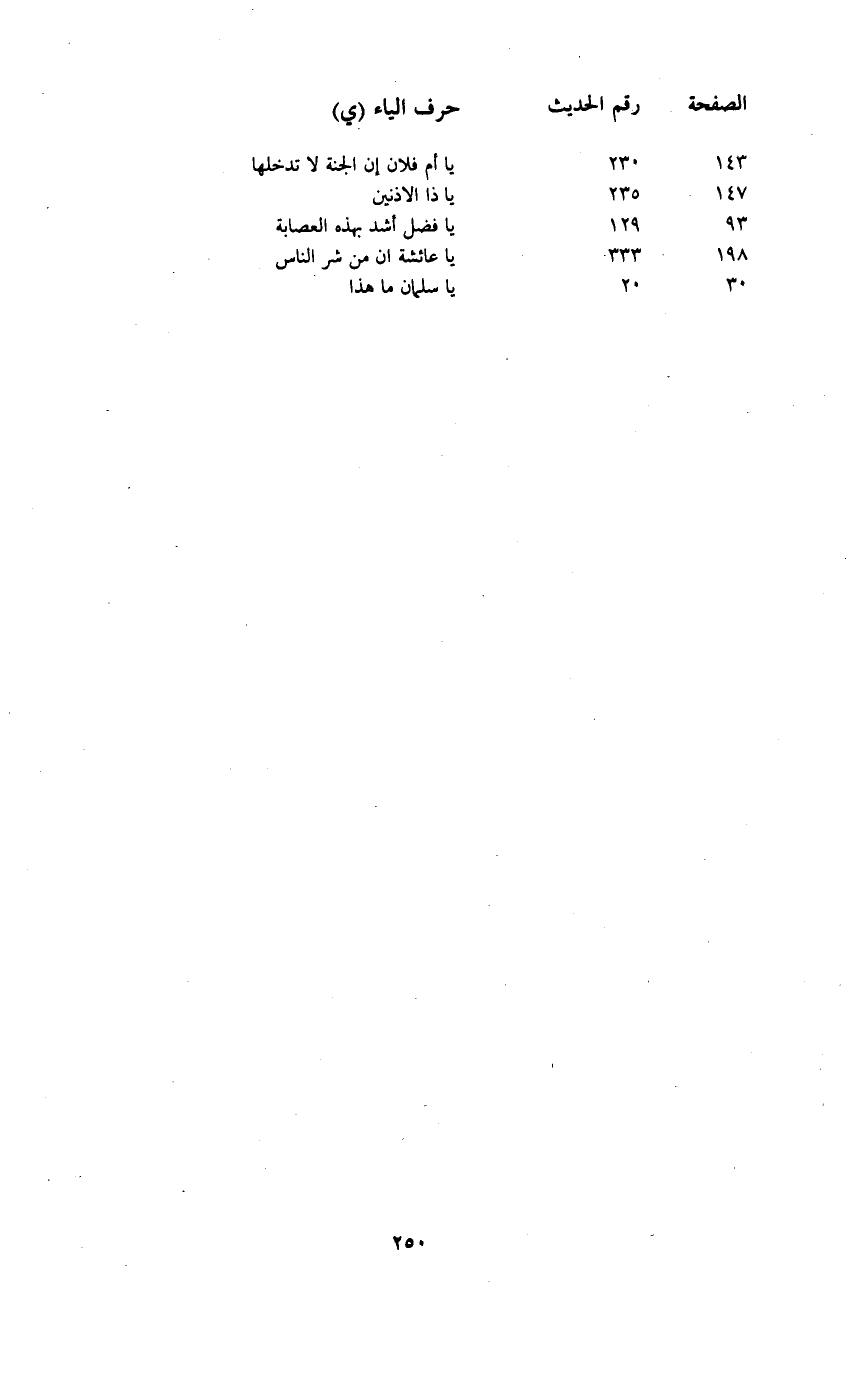 الصفحة/ رقم الحديث/ حرف الياء (ي)