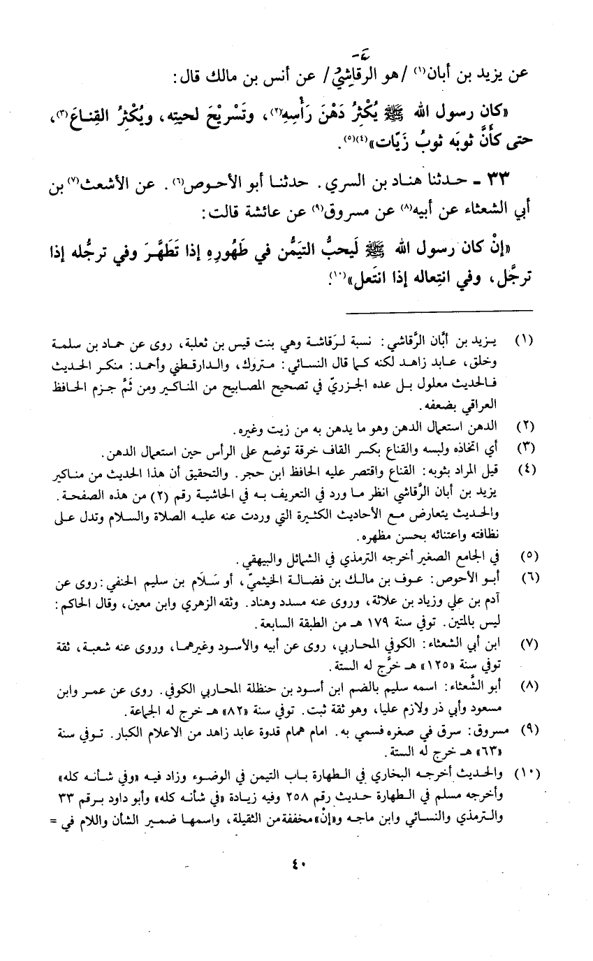 33- حدثنا هناد بن السري. حدثنا أبو الأحوص «6» . عن الأشعث «7» بن أبي الشعثاء عن أبيه «8» عن مسروق «9» عن عائشة قالت:
