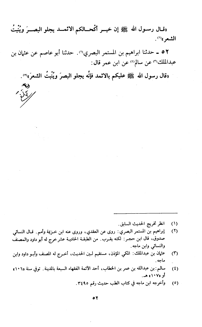 52- حدثنا ابراهيم بن المستمر البصري «2» . حدثنا أبو عاصم عن عثمان بن عبد الملك «3» عن سالم «4» عن ابن عمر قال: