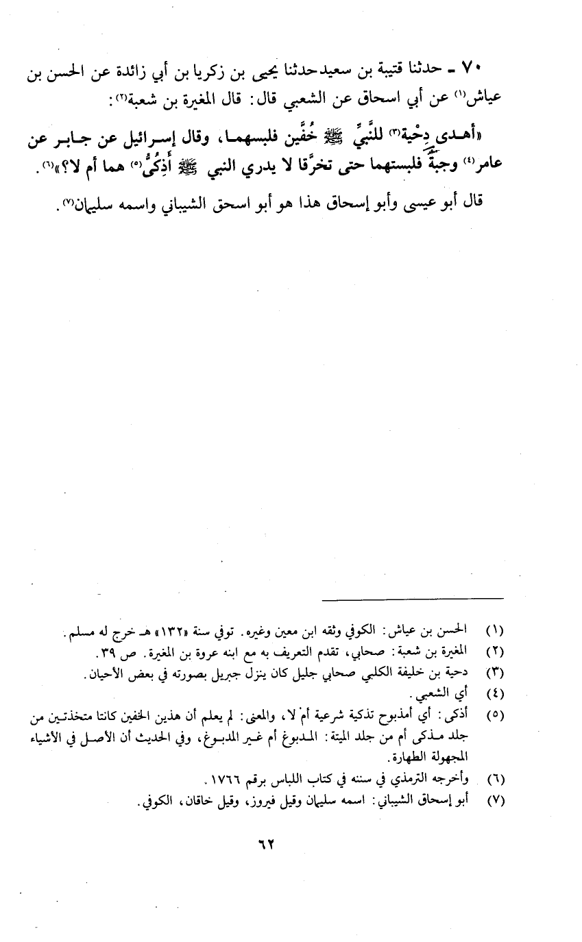 70- حدثنا قتيبة بن سعيد حدثنا يحيى بن زكريا بن أبي زائدة عن الحسن بن عياش «1» عن أبي اسحاق عن الشعبي قال: قال المغيرة بن شعبة «2» :