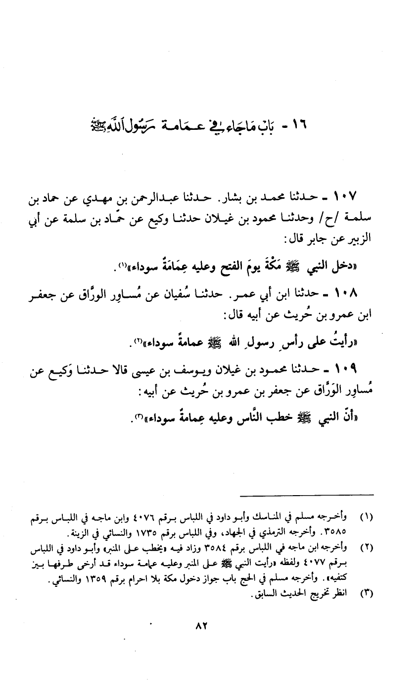 107- حدثنا محمد بن بشار. حدثنا عبد الرحمن بن مهدي عن حماد بن سلمة/ ح/ وحدثنا محمود بن غيلان حدثنا وكيع عن حمّاد بن سلمة عن أبي الزبير عن جابر قال: