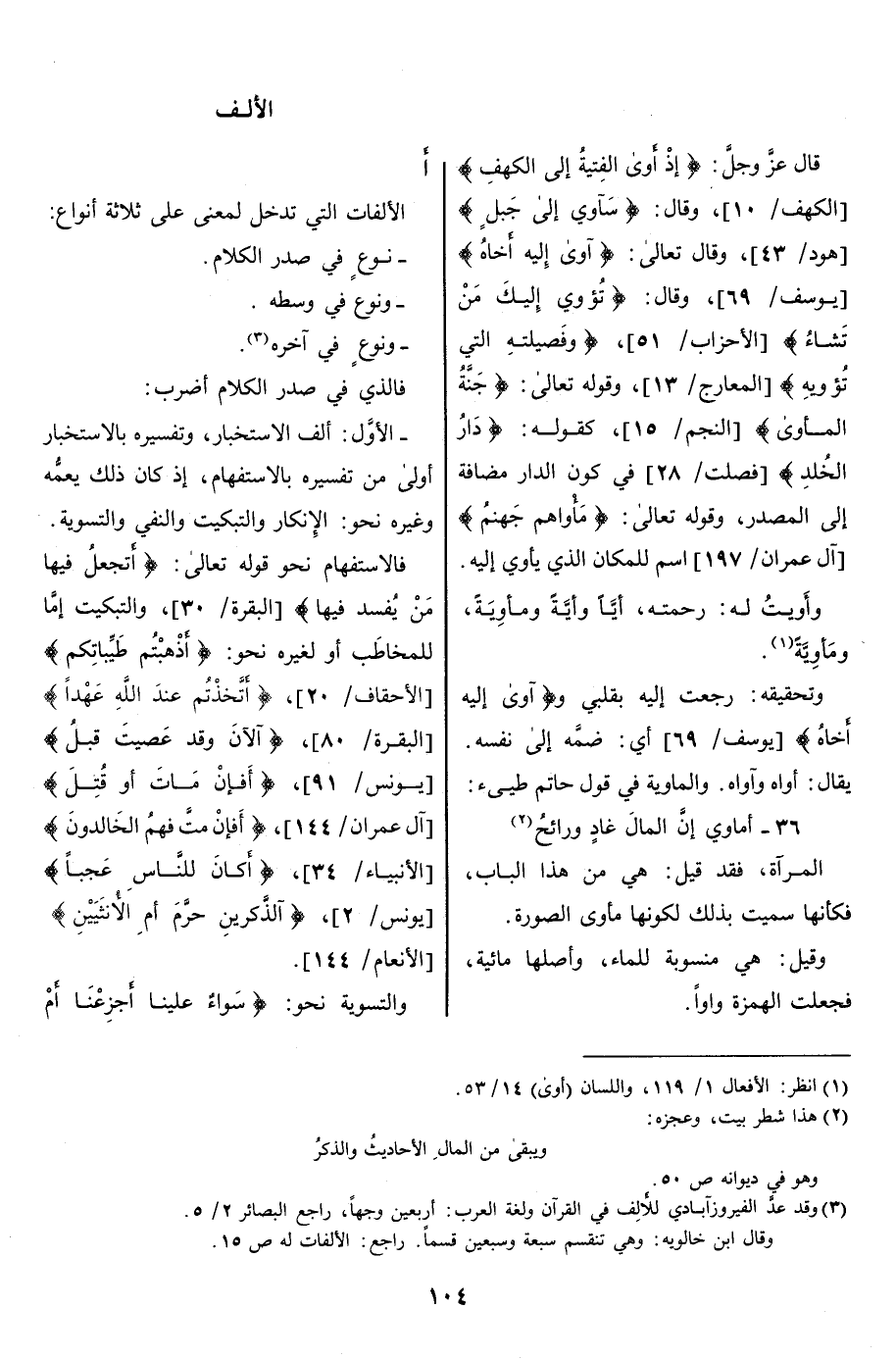 (3) وقد عدّ الفيروزآبادي للألف في القرآن ولغة العرب: أربعين وجها، راجع البصائر 2/ 5.