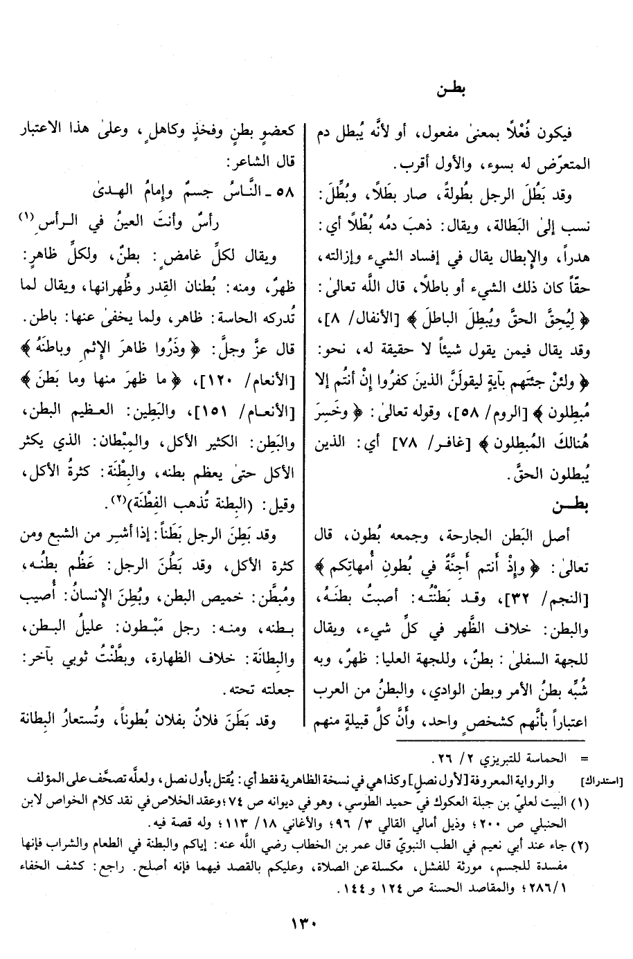 «1» ويقال لكلّ غامض: بطن، ولكلّ ظاهر: