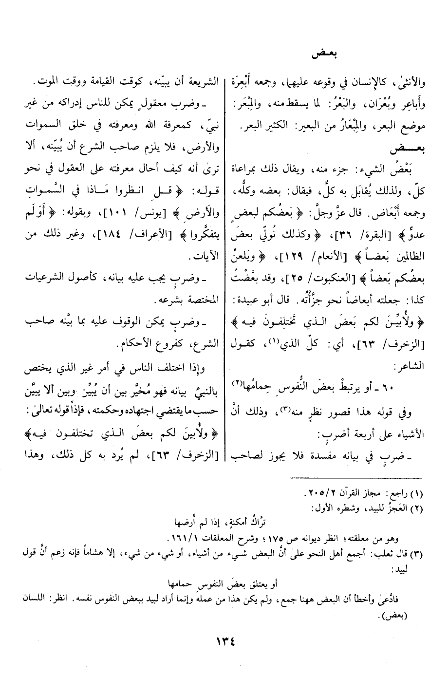 (3) قال ثعلب: أجمع أهل النحو على أنّ البعض شيء من أشياء، أو شيء من شيء، إلا هشاما فإنه زعم أنّ قول لبيد: