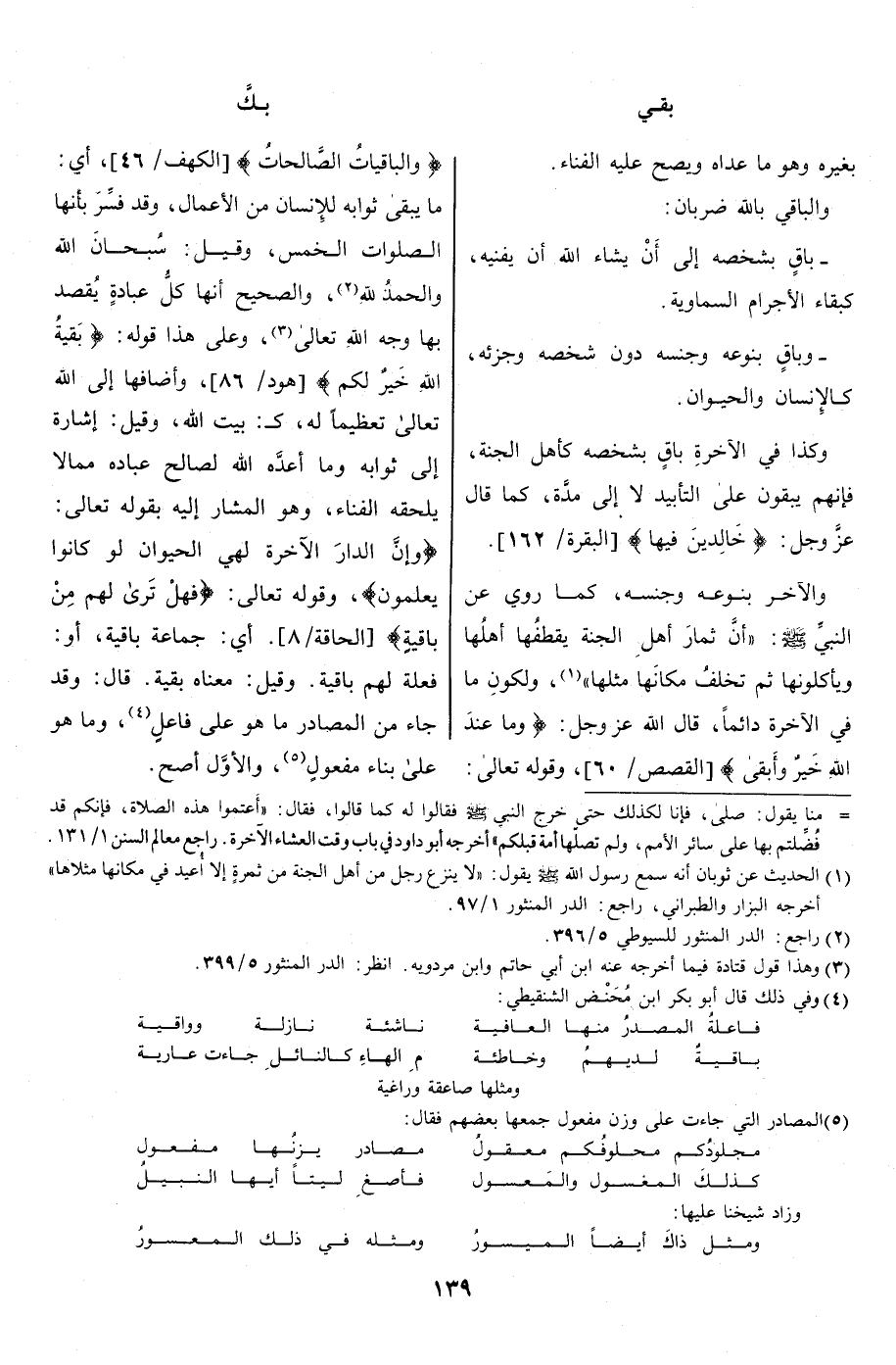 ما يبقى ثوابه للإنسان من الأعمال، وقد فسّر بأنها الصلوات الخمس، وقيل: سبحان الله والحمد لله «2» ، والصحيح أنها كلّ عبادة يقصد بها وجه الله تعالى «3» ، وعلى هذا قوله: بَقِيَّتُ اللَّهِ خَيْرٌ لَكُمْ