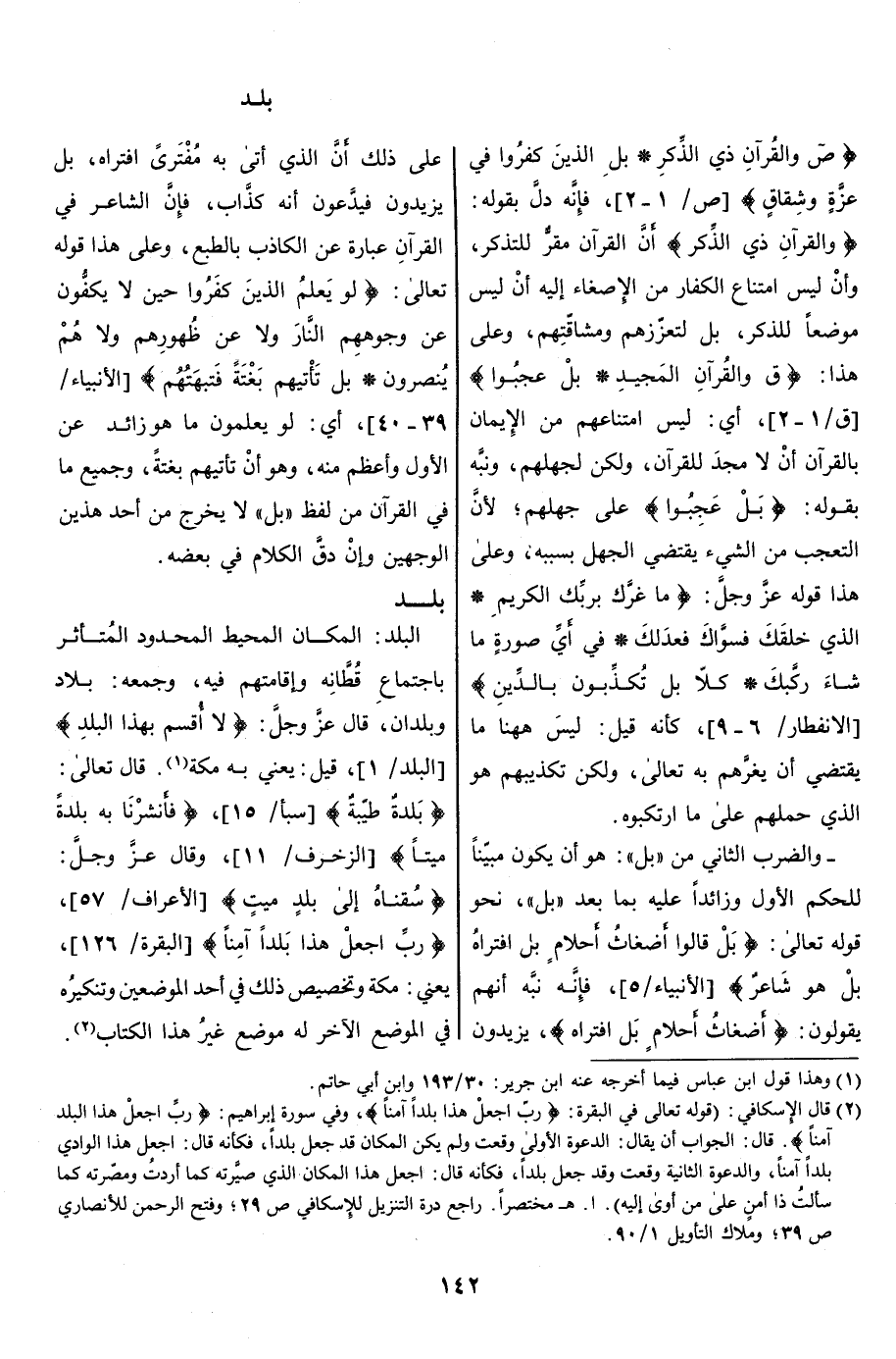 فَسُقْناهُ إِلى بَلَدٍ مَيِّتٍ [الأعراف/ 57] ، رَبِّ اجْعَلْ هذا بَلَداً آمِناً [البقرة/ 126] ، يعني: مكة وتخصيص ذلك في أحد الموضعين وتنكيره في الموضع الآخر له موضع غير هذا الكتاب «2» .
