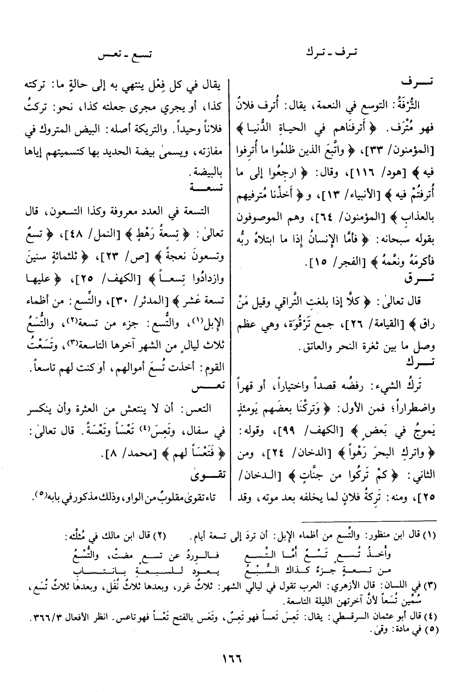 [الدخان/ 24] ، ومن الثاني: كَمْ تَرَكُوا مِنْ جَنَّاتٍ [الدخان/ 25] ، ومنه: تَرِكَة فلان لما يخلفه بعد موته، وقد يقال في كل فعل ينتهي به إلى حالة ما تركته كذا، أو يجري مجرى جعلته كذا، نحو: تركت فلانا وحيدا. والتَّرِيكَة أصله: البيض المتروك في مفازته، ويسمى بيضة الحديد بها كتسميتهم إياها بالبيضة.