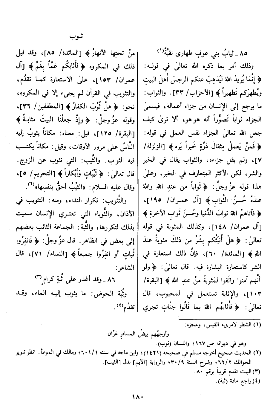 إِنَّما يُرِيدُ اللَّهُ لِيُذْهِبَ عَنْكُمُ الرِّجْسَ أَهْلَ الْبَيْتِ وَيُطَهِّرَكُمْ تَطْهِيراً [الأحزاب/ 33] . والثَّوَاب: