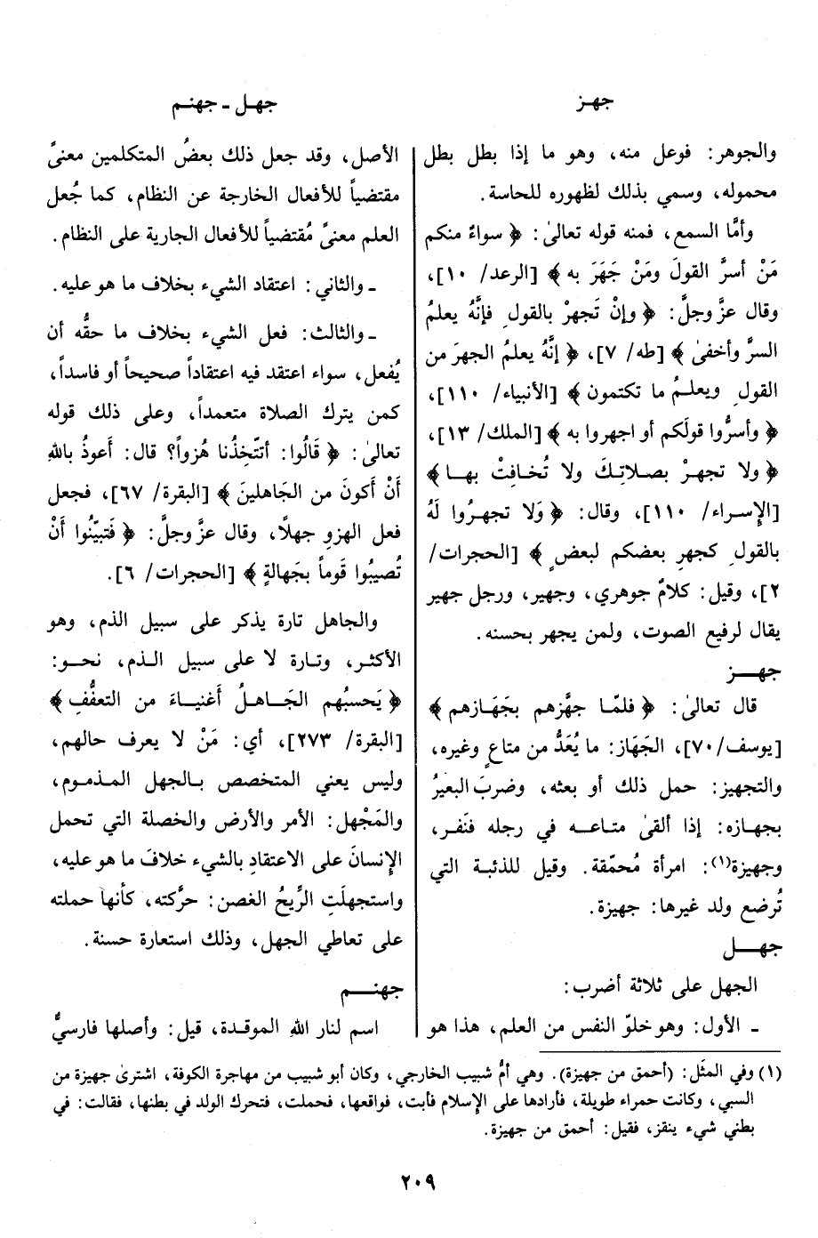 [البقرة/ 67] ، فجعل فعل الهزو جهلا، وقال عزّ وجلّ: فَتَبَيَّنُوا أَنْ تُصِيبُوا قَوْماً بِجَهالَةٍ