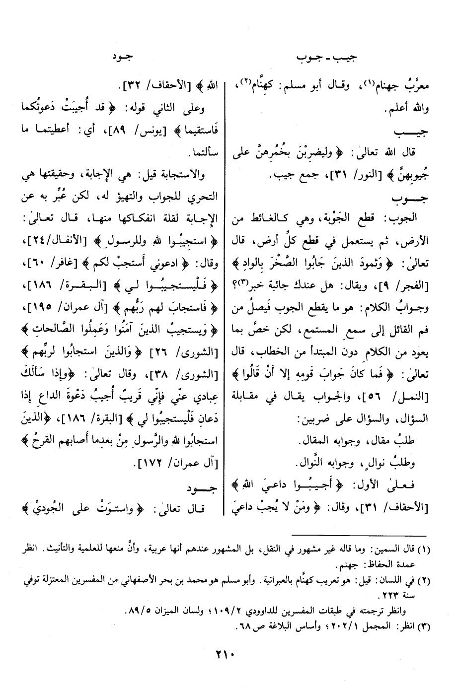 (2) في اللسان: قيل: هو تعريب كهنّام بالعبرانية. وأبو مسلم هو محمد بن بحر الأصفهاني من المفسرين المعتزلة توفي سنة 223.