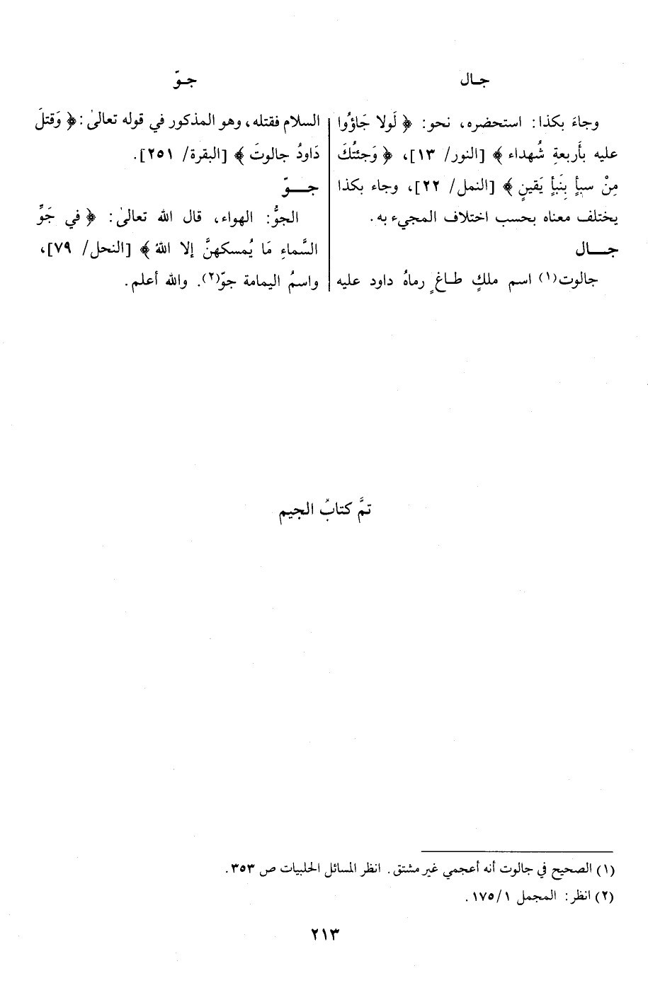 (1) الصحيح في جالوت أنه أعجمي غير مشتق. انظر المسائل الحلبيات ص 353. [.....]