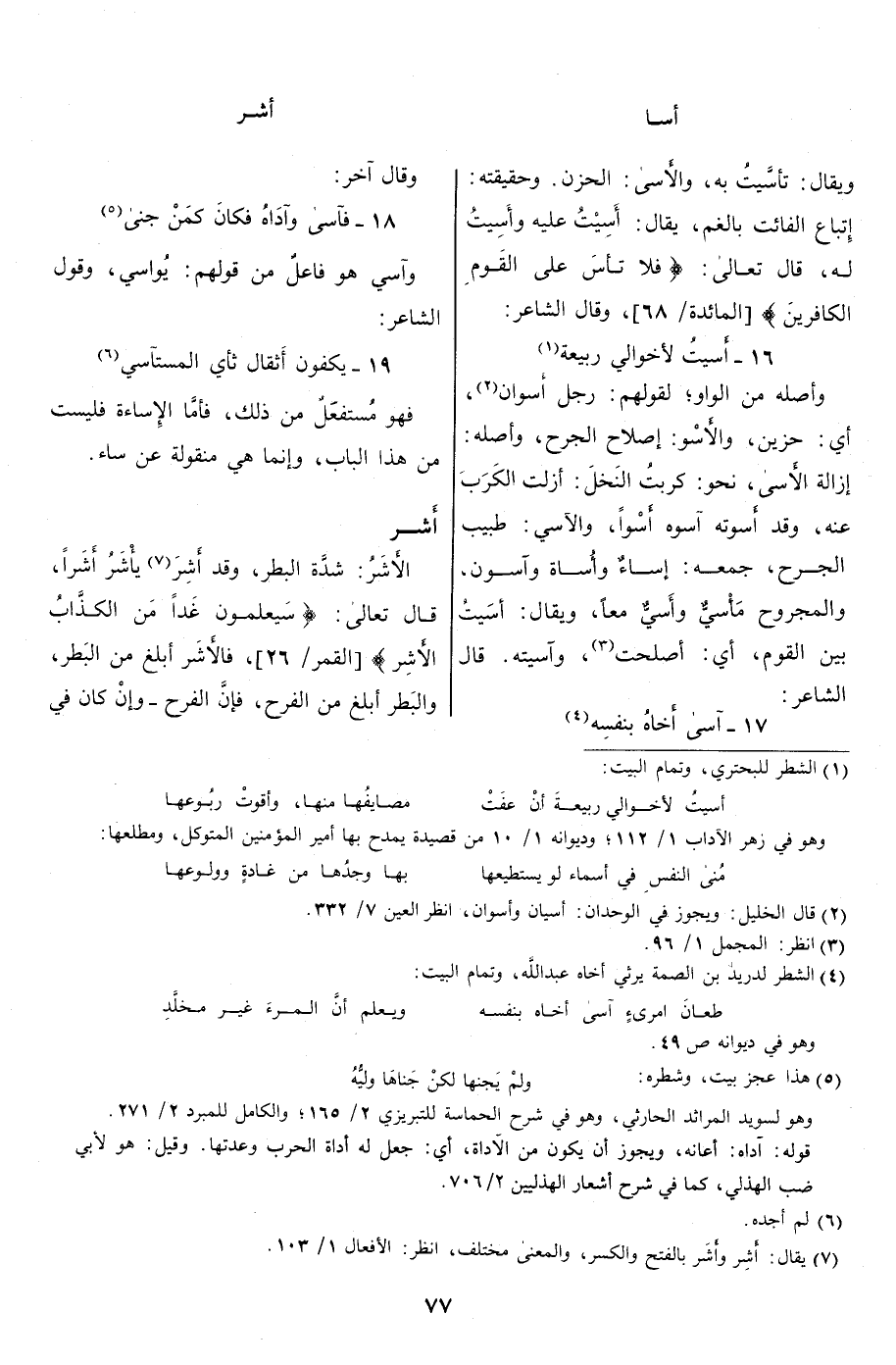 (2) قال الخليل: ويجوز في الوحدان: أسيان وأسوان، انظر العين 7/ 332.
