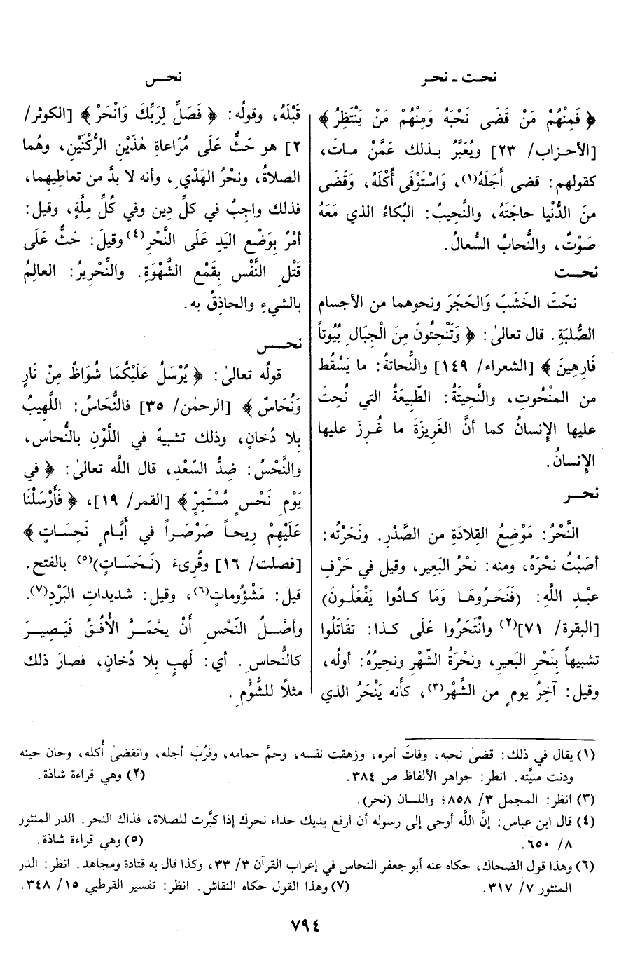 [الأحزاب/ 23] ويعبّر بذلك عمّن مات، كقولهم: قضى أجله «1» ، واستوفى أكله، وقضى من الدّنيا حاجته، والنَّحِيبُ: البكاء الذي معه صوت، والنُّحَابُ السُّعَال.