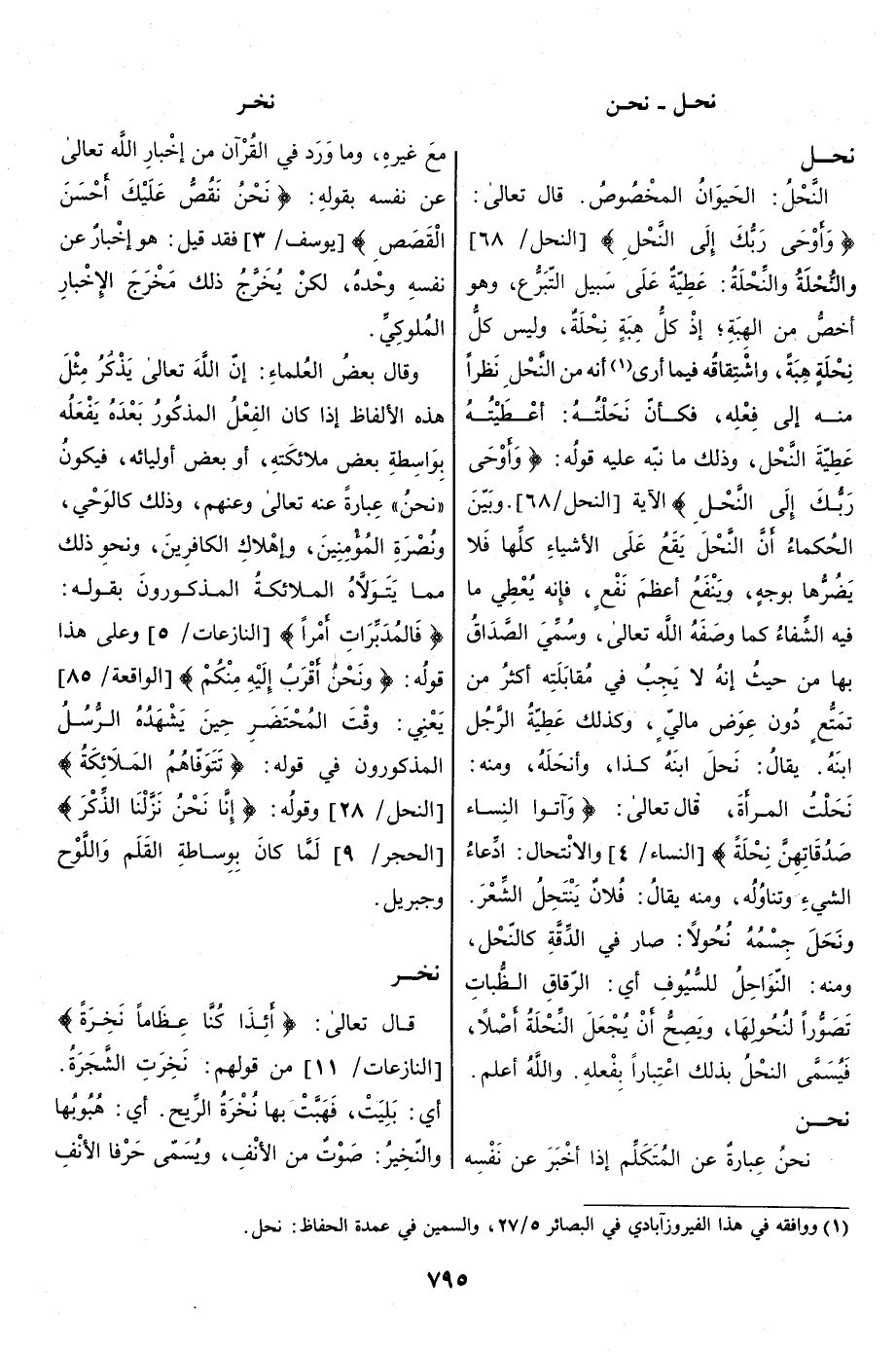 (1) ووافقه في هذا الفيروزآبادي في البصائر 5/ 27، والسمين في عمدة الحفاظ: نحل.