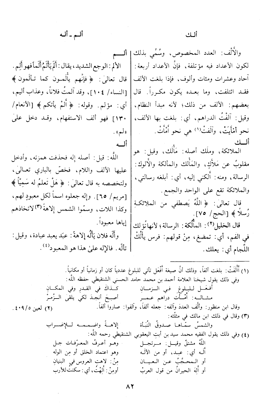 الله: قيل: أصله إله فحذفت همزته، وأدخل عليها الألف واللام، فخصّ بالباري تعالى، ولتخصصه به قال تعالى: هَلْ تَعْلَمُ لَهُ سَمِيًّا [مريم/ 65] . وإله جعلوه اسما لكل معبود لهم، وكذا اللات، وسمّوا الشمس إِلَاهَة «3» لاتخاذهم إياها معبودا.