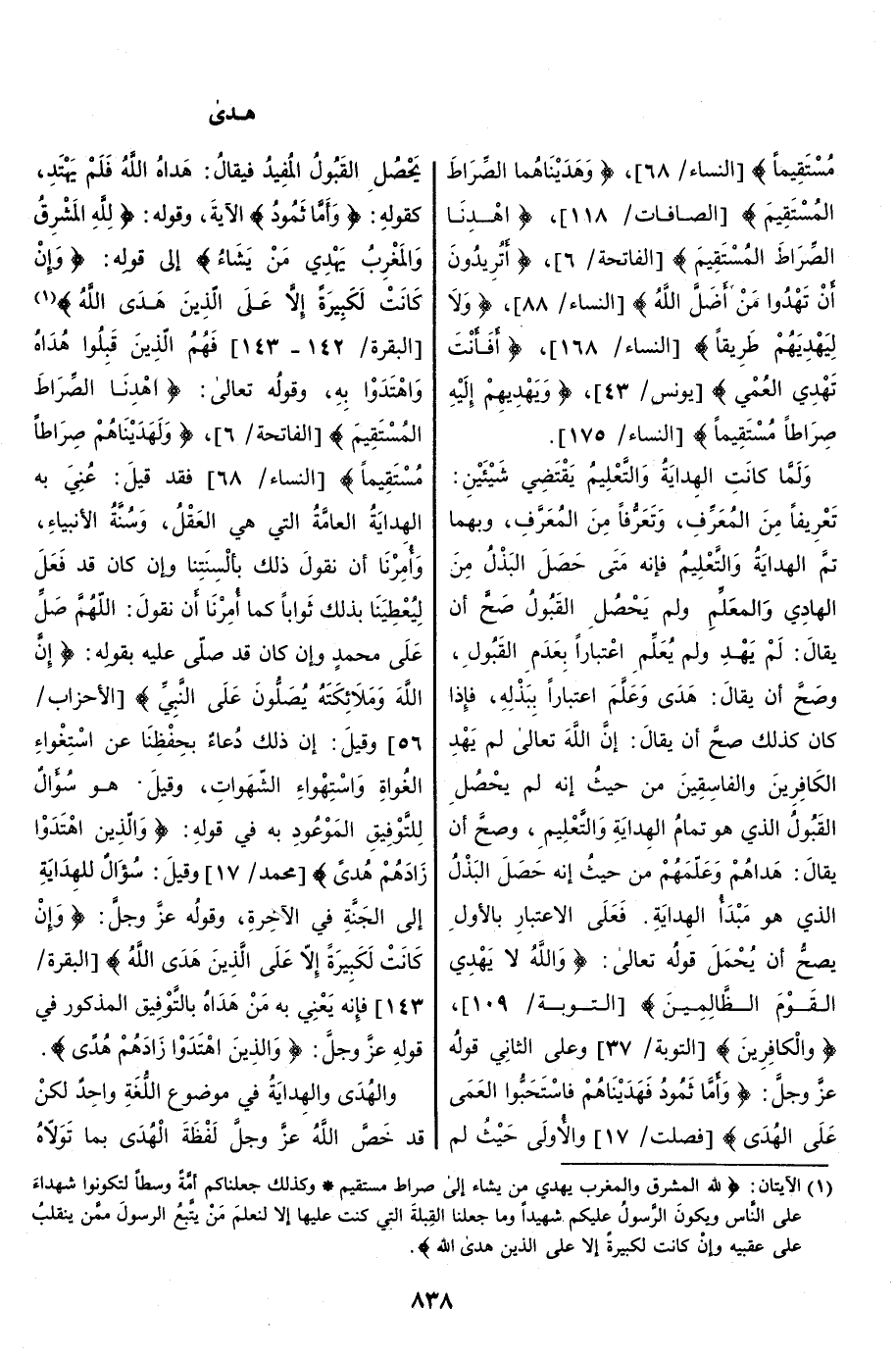 [النساء/ 68] ، وَهَدَيْناهُمَا الصِّراطَ الْمُسْتَقِيمَ [الصافات/ 118] ، اهْدِنَا الصِّراطَ الْمُسْتَقِيمَ [الفاتحة/ 6] ، أَتُرِيدُونَ أَنْ تَهْدُوا مَنْ أَضَلَّ اللَّهُ [النساء/ 88] ، وَلا لِيَهْدِيَهُمْ طَرِيقاً [النساء/ 168] ، أَفَأَنْتَ تَهْدِي الْعُمْيَ [يونس/ 43] ، وَيَهْدِيهِمْ إِلَيْهِ صِراطاً مُسْتَقِيماً [النساء/ 175] .