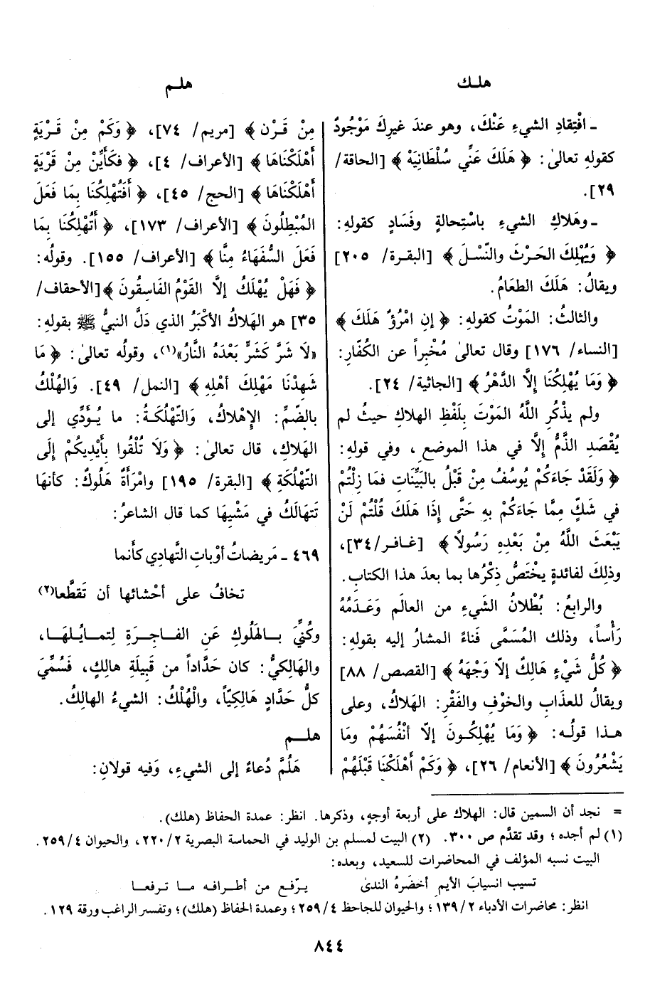 انظر: محاضرات الأدباء 2/ 139، والحيوان للجاحظ 4/ 259، وعمدة الحفاظ (هلك) ، وتفسير الراغب ورقة 129.