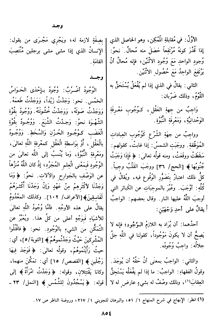 الوجود أضرب: وجود بإحدى الحواسّ الخمس. نحو: وَجَدْتُ زيدا، ووَجَدْتُ طعمه.