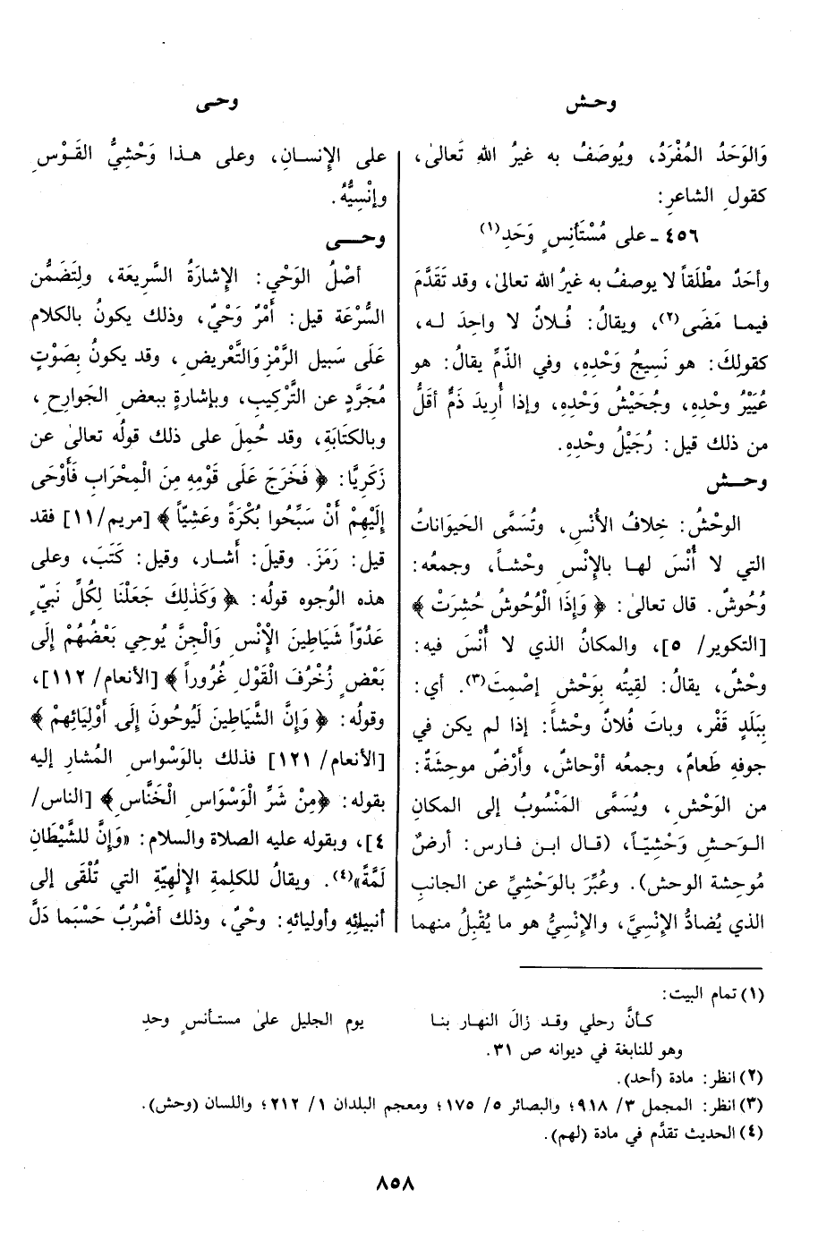 (3) انظر: المجمل 3/ 918، والبصائر 5/ 175، ومعجم البلدان 1/ 212، واللسان (وحش) .