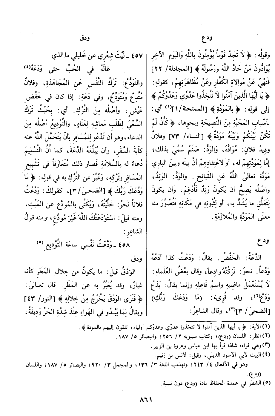 (2) انظر: اللسان (ودع) ، وكتاب سيبويه 2/ 256، والبصائر 5/ 187.