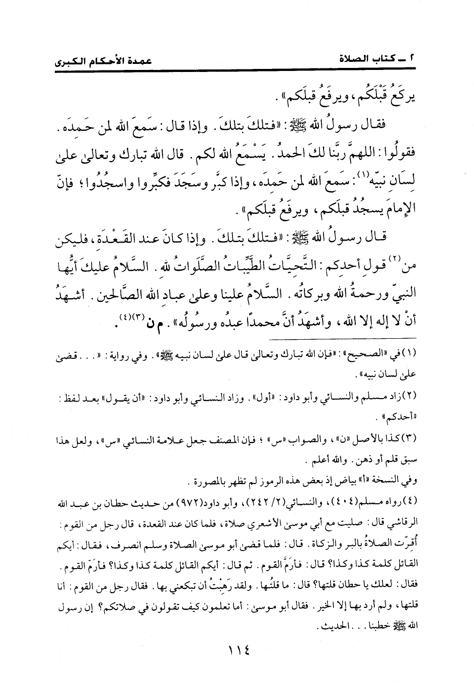 قال رسولُ الله - صلى الله عليه وسلم -: "فتلكَ بتلكَ. وإذا كانَ عند القعدَةِ، فليكن من (¬2) قولِ أحدِكم: التَّحِيَّاتُ الطيَباتُ الصَّلَواتُ للهِ. السَّلامُ عليكَ أيُّها النَّبِيّ ورحمةُ الله وبركاتُه. السَّلامُ علينا وعلي عبادِ الله الصَّالحين. أشهَدُ أنْ لا إله إلَّا الله، وأشهَدُ أن محمدًا عبدُه ورسُولُه". م ن (¬3) (¬4).
