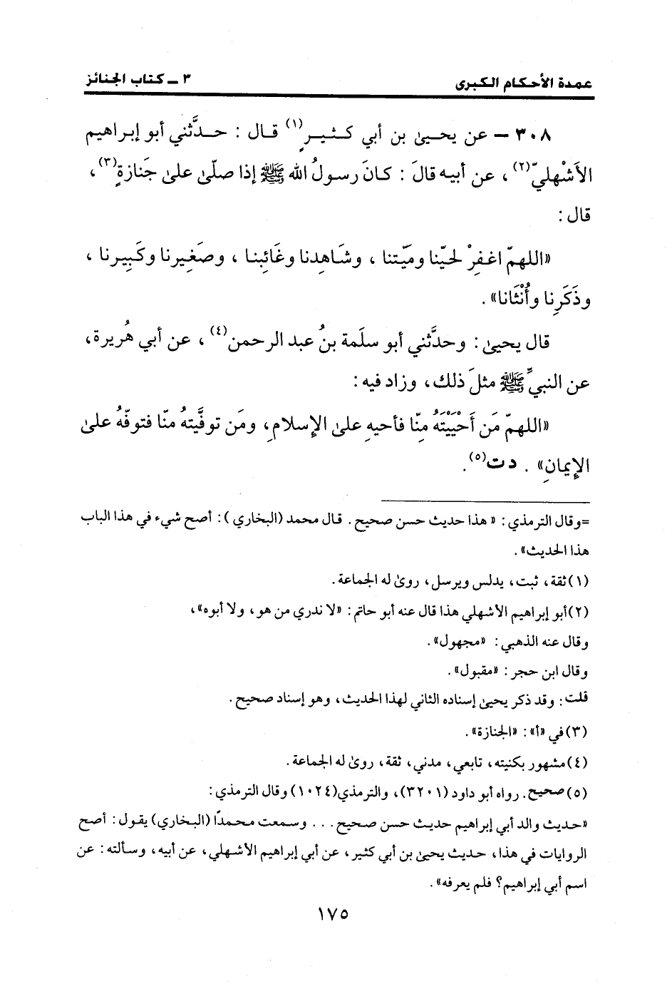 308 - عن يحيى بن أبي كثيرٍ (¬1) قال: حدَّثني أبو إبراهيم الأَشْهليّ (¬2)، عن أبيه قالَ: كانَ رسولُ الله - صلى الله عليه وسلم - إذا صلّي علي جَنازةٍ (¬3)، قال: