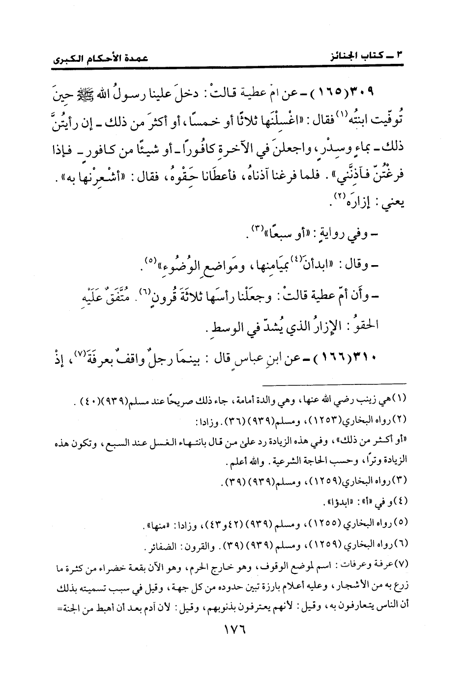 309 (165) - عن أم عطية قالتْ: دخلَ علينا رسولُ الله - صلى الله عليه وسلم - حِينَ تُوفّيت ابنتُه (¬1) فقال: "اغْسِلْنَها ثلاثًا أو خمسًا، أو أكثرَ من ذلك- إن رأيتُنَّ ذلك- بماءٍ وسِدْرٍ، واجعلنَ في الآخرةِ كافُورًا- أو شيئًا من كافورٍ- فإذا فرغْتُنّ فآذِنَّني". فلما فرغنا آذناهُ، فأعطَانا حَقْوهُ، فقال: "أشْعِرْنها به". يعني: زارَه (¬2).